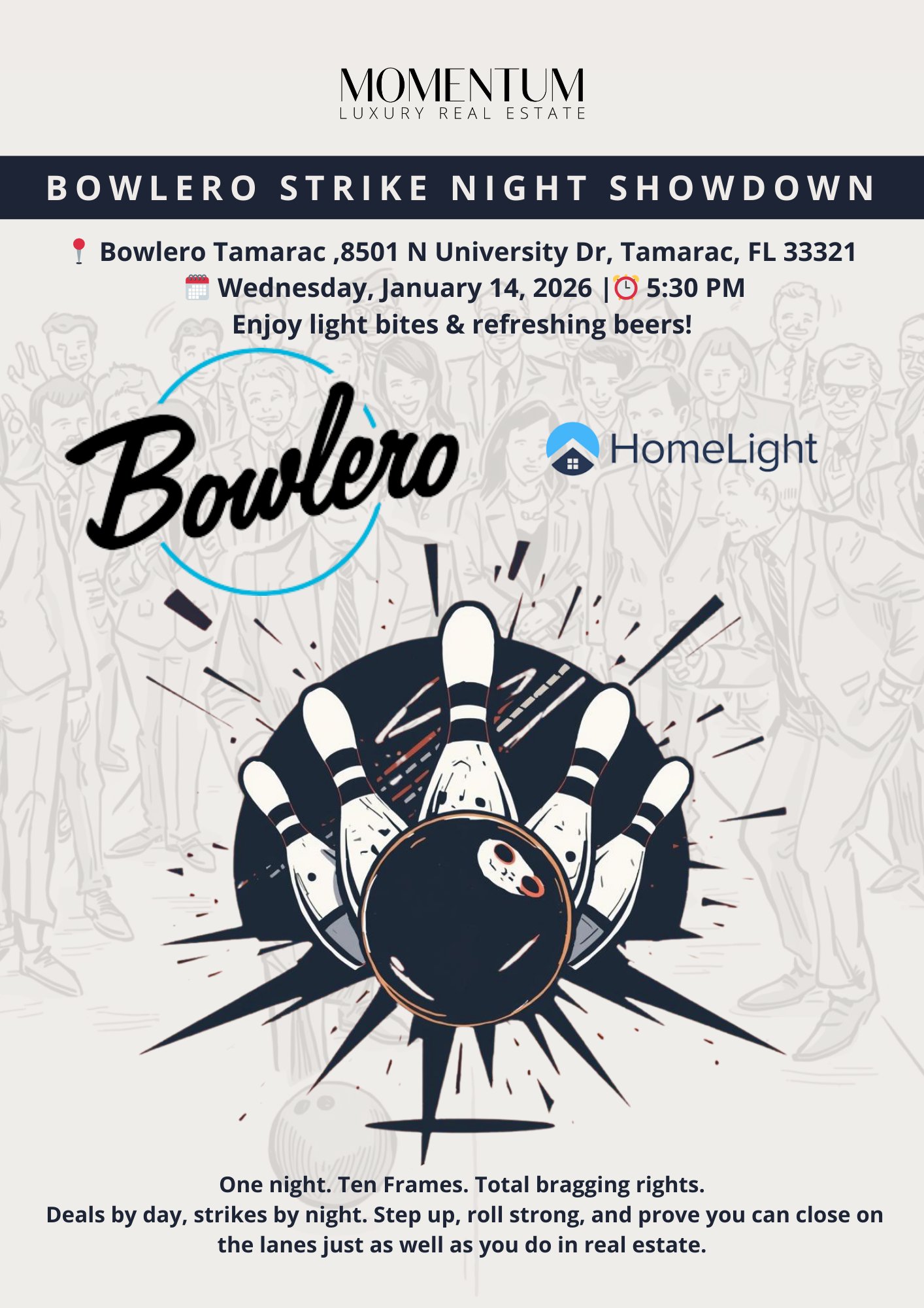 We are excited to extend a private invitation to our valued associates and select brokers for an evening of fun, networking, and friendly competition. This exclusive Bowling Night at Bowlero Tamarac is designed to bring together top professionals from our firm in a relaxed, engaging setting.